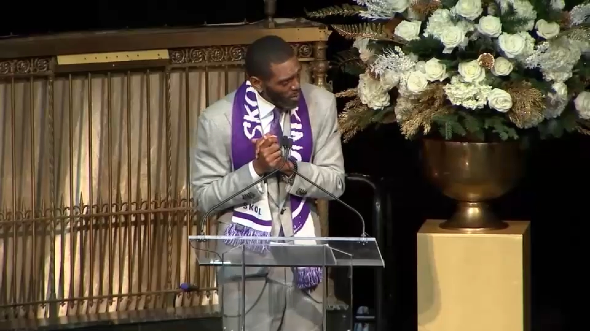 Pro Football Hall of Famer, broadcaster and cancer survivor Randy Moss accepted the inaugural Stuart Scott Impact Award, thanking Scott’s mom for raising a game changer.