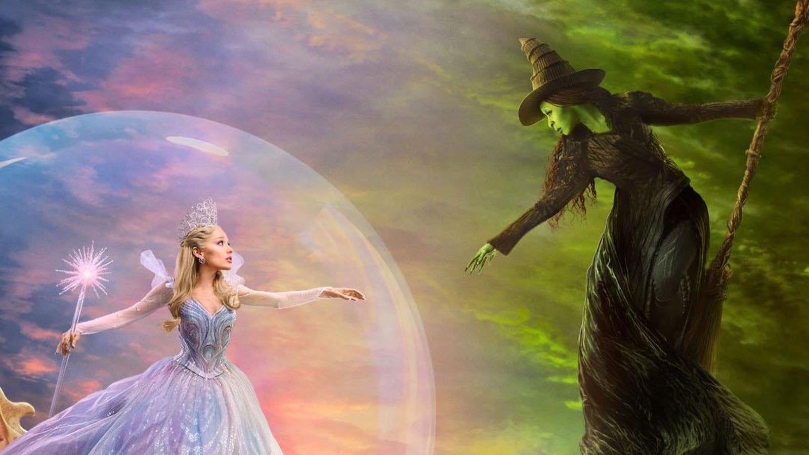 The first installment wraps up dramatically with Elphaba soaring off on her broomstick after uncovering the Wizard’s deceit, leading Madame Morrible to brand her as a “wicked witch.” Meanwhile, Glinda remains in Oz, assuming a new role as its public face.