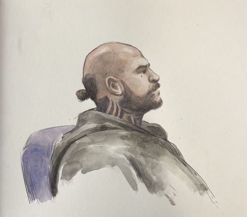 A court sketch of bikie David James Pye on the first day of his trial in the WA Supreme Court. (Anne Barnetson)