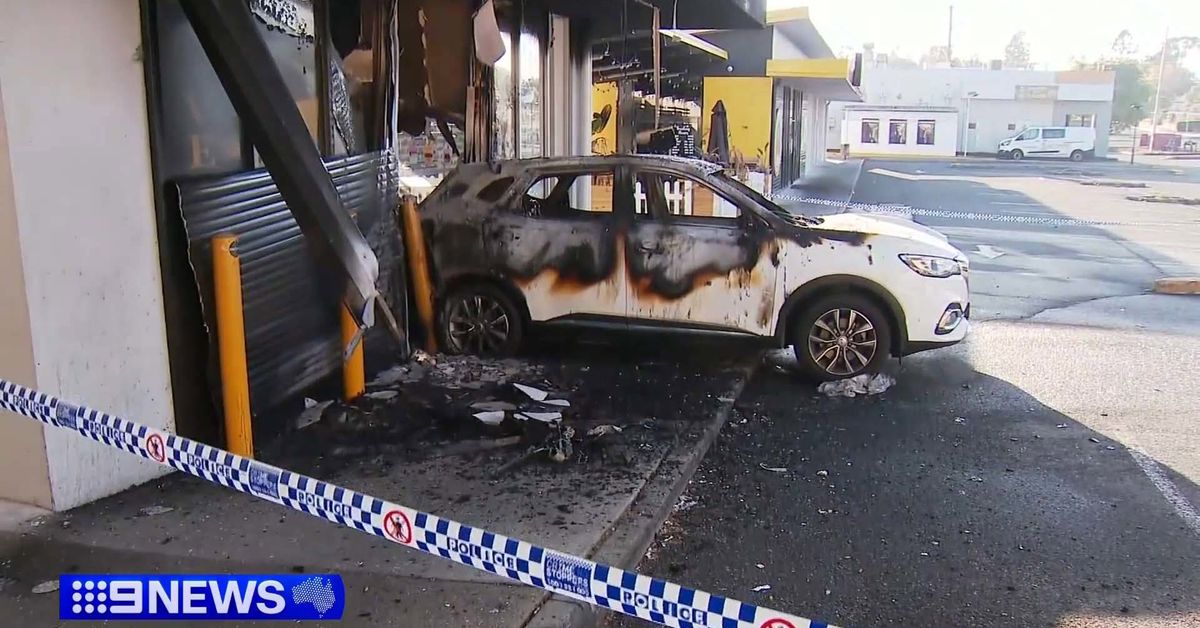 The shop was allegedly rammed by a stolen MG station wagon around 5am before half a dozen people ran into the store, stealing handfuls of vapes.