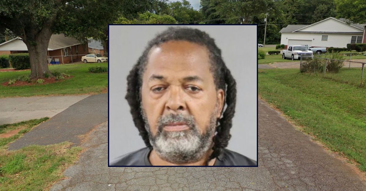 Inset: Gregory Bernard Campbell (Anderson County, South Carolina Sheriff’s Office). Background: The block in Anderson County where Campbell allegedly threw boiling water on his great niece (Google Maps).