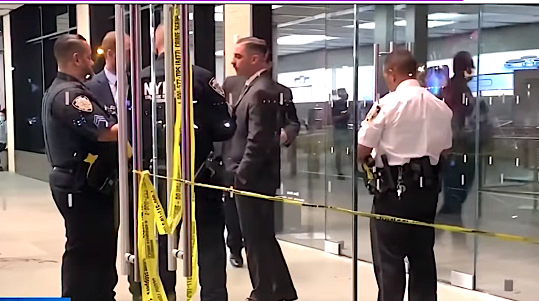 Other employees reportedly managed to pull the bloodied guard into the store, and the attacker fled, heading to a subway stop. He remained at large Saturday evening.