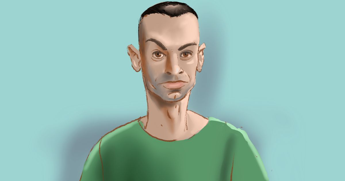 Dressed in a green top provided by the prison, he only spoke to confirm his ability to hear NSW Supreme Court Justice Natalie Adams.