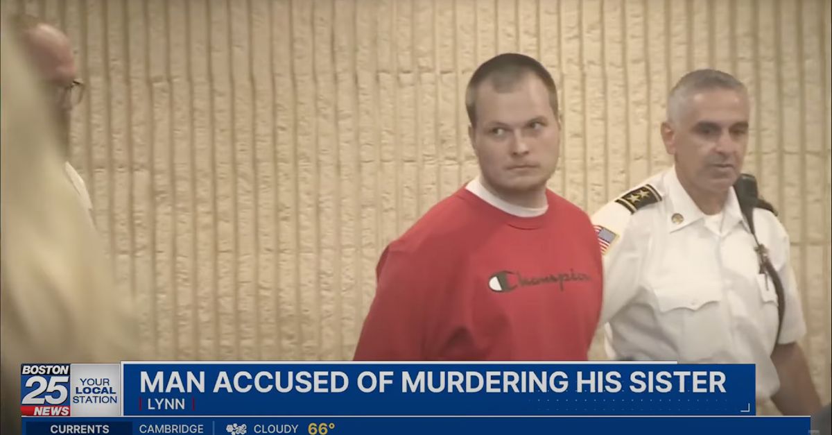 Joshua Smith appears in Lynn District Court on Monday, Sept. 8, 2025, for allegedly murdering his sister (WFXT/YouTube).
