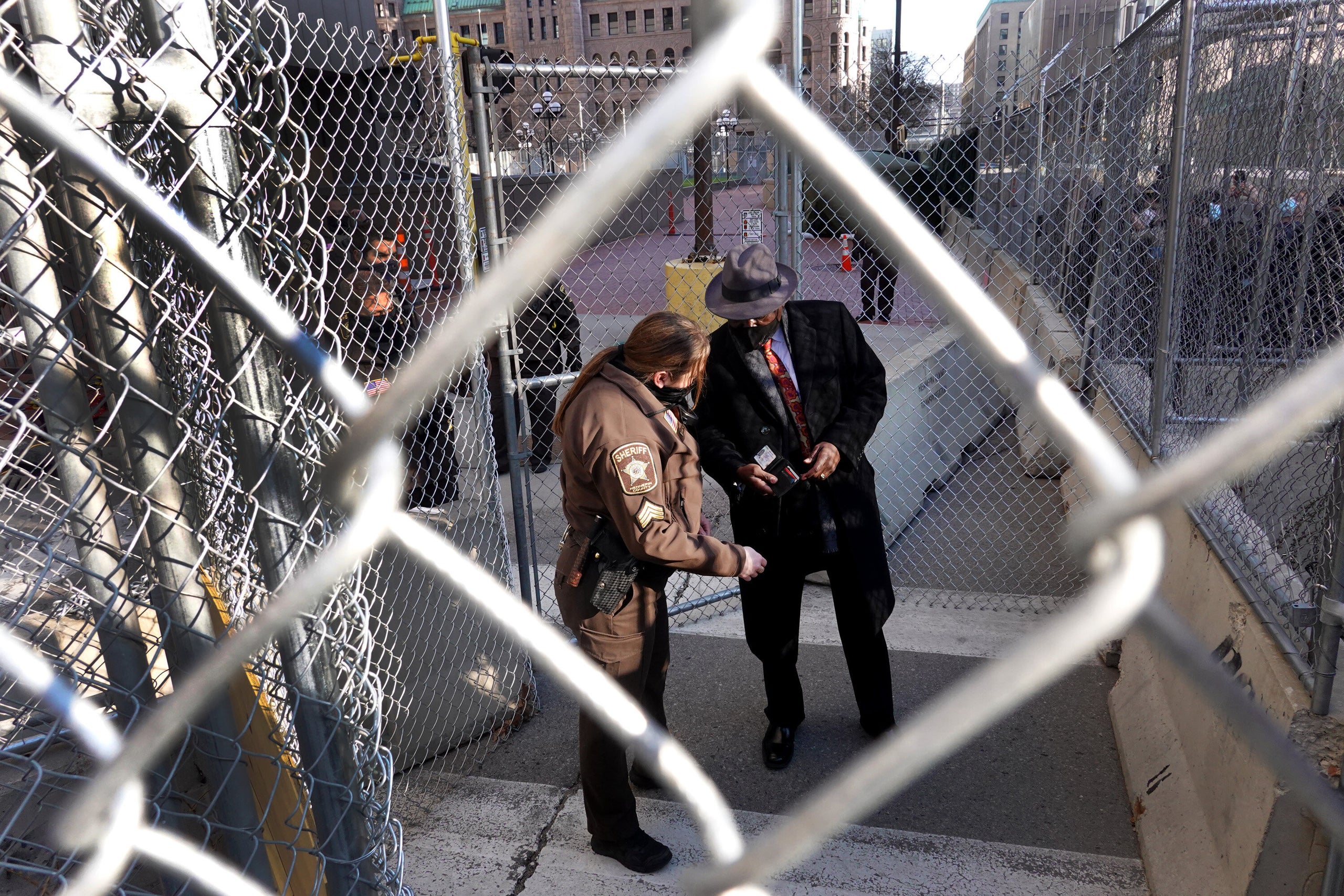 The Hennepin County Government Center in Minneapolis sits behind metal barriers on March 29.