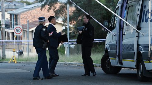 Police at the scene in Condell Park after John Versace was gunned down. (Kate Geraghty)