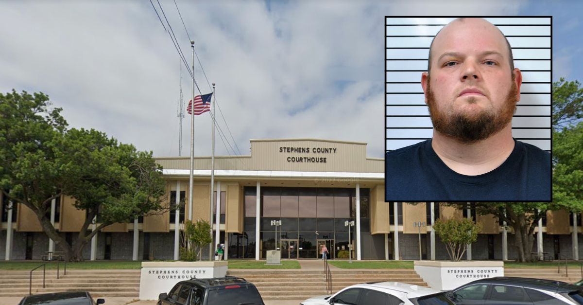 Inset: Cody Wayne Adams (Stephens County Sheriff”s Office). Background: The Stephens County Courthouse in Duncan, Oklahoma (Google Maps).