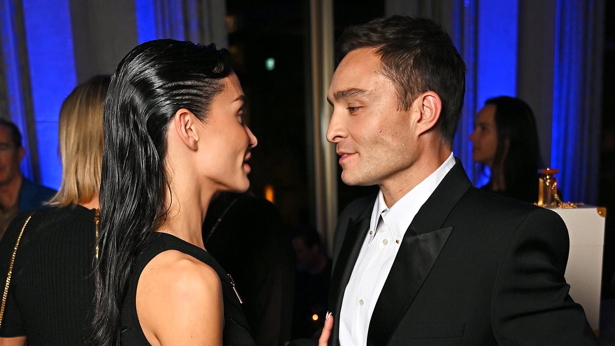Ed Westwick looked smitten with his wife Amy Jackson as the pair attended a star-studded party in London on Wednesday.