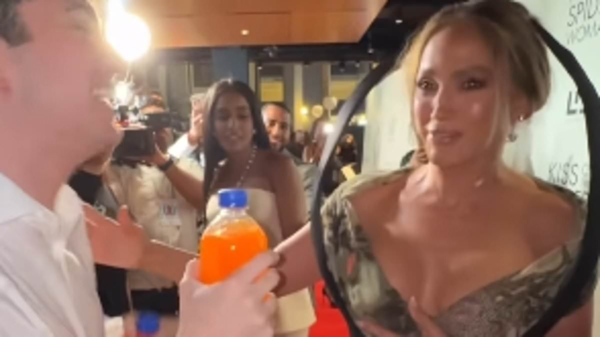 Jennifer Lopez stopped in her tracks when on the red carpet for the Kiss Of The Spider Woman premiere in New York City last week