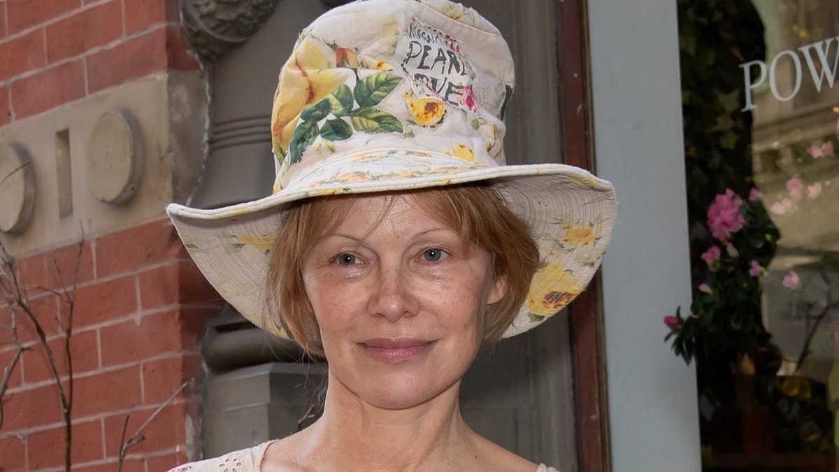 Having launched her skincare line earlier this year, Pamela chose to go makeup-free, allowing her copper-hued bob to peek out from beneath her stylish headwear.