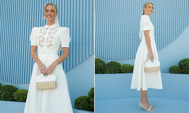 Sylvia Jeffreys looked breathtaking in white as she attended Derby Day in Melbourne on Saturday