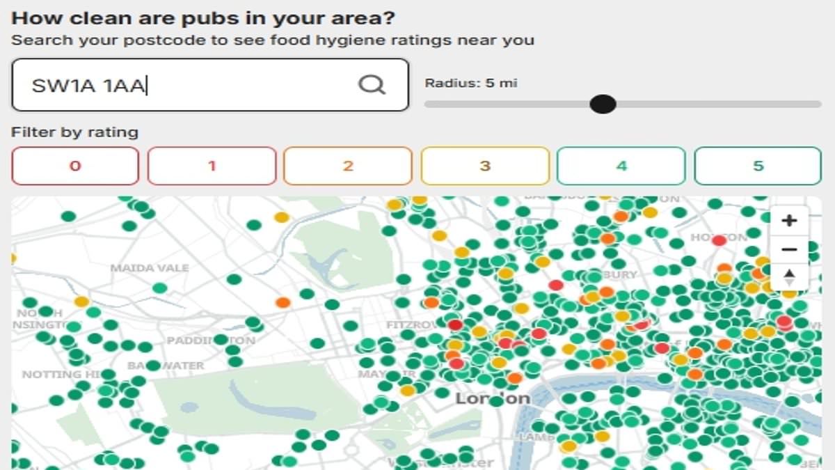At the other end of the scale, 79 councils in the UK didn’t have a single pub that failed a hygiene rating.