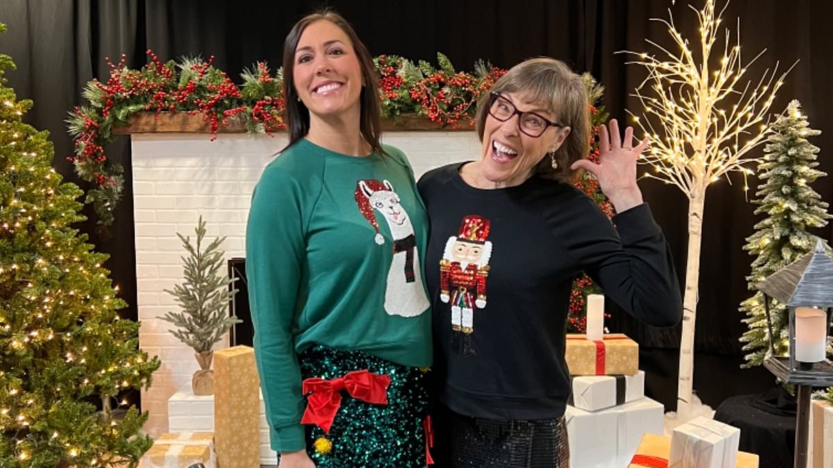 Allison Rankin is pictured above (left) at a family Christmas get-together in 2022 with her mother (right). She had to throw up in the bathroom at the event from eating too much while taking a GLP-1 agonist