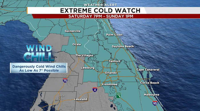 ORLANDO, Fla. – A rare and severe cold snap is on the horizon for Central Florida, prompting urgent preparations. The National Weather Service has announced an Extreme Cold Watch for much of the region, sparing only Sumter County, from Saturday evening through Sunday afternoon.