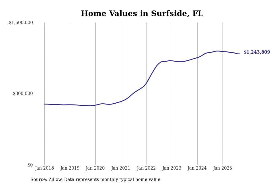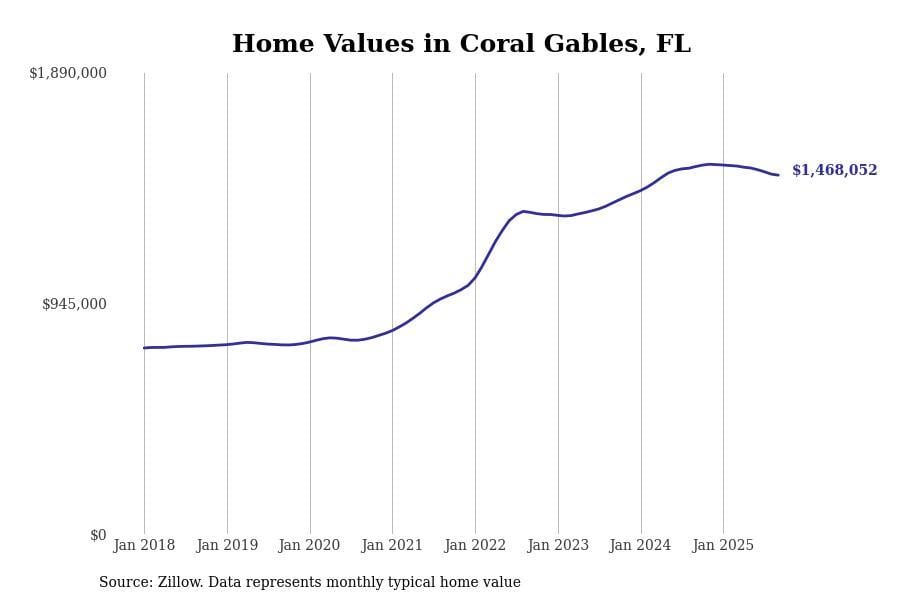 Finally, in Miami-Fort Lauderdale-Pompano Beach, another typical home value is recorded at $1,075,964. The area experienced a slight 2.3% decline in the past year, yet boasts a remarkable 81.8% increase over five years.