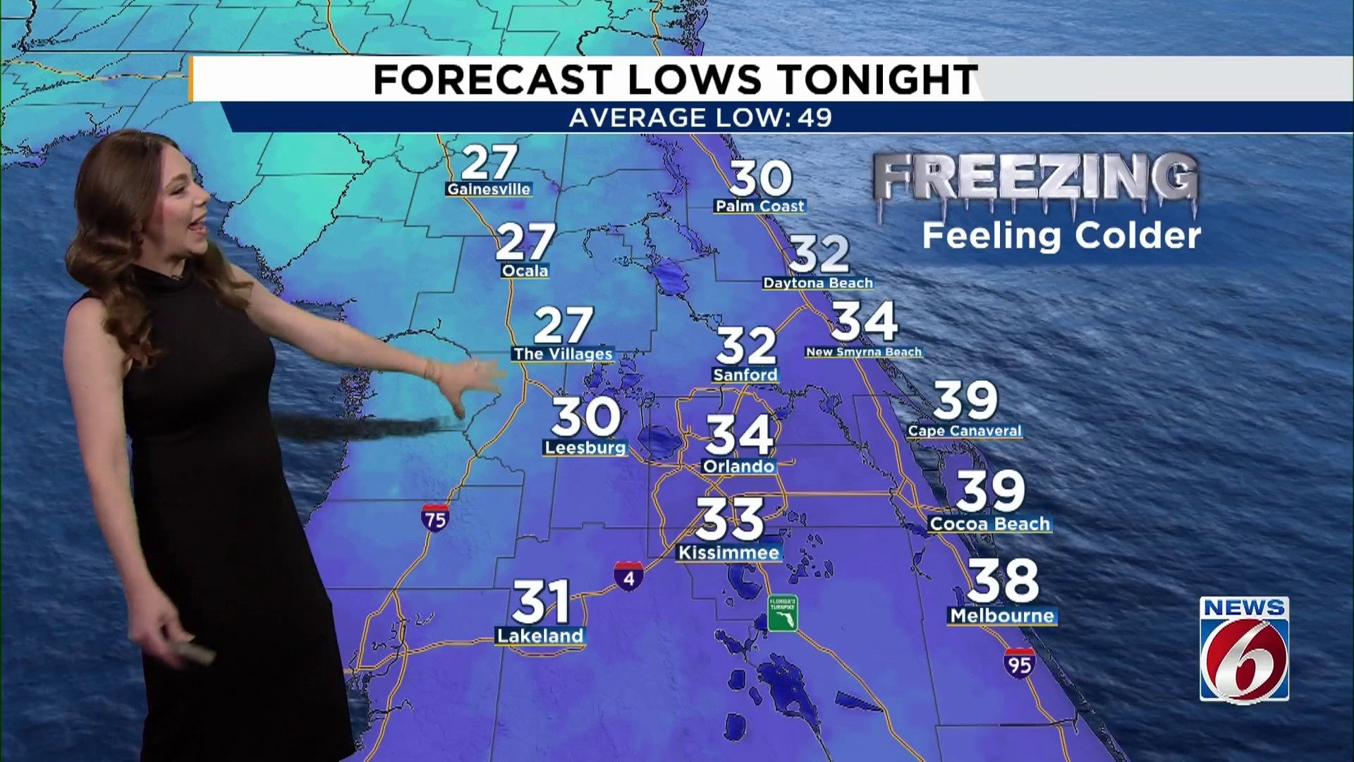 By Friday morning, Central Florida is set to experience its most frigid temperatures in over four years. In the interior areas, widespread freezing is anticipated, with the coldest locations possibly dipping into the upper 20s.
