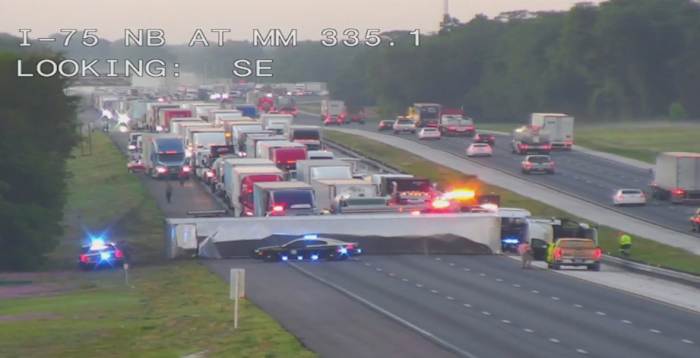 SUMTER COUNTY, Fla. – An incident involving an overturned semi-truck disrupted traffic on Interstate 75’s northbound lanes in Sumter County early Wednesday, as confirmed by the Florida Highway Patrol.