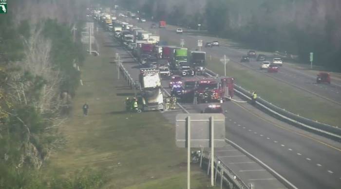 The Florida Highway Patrol reported that the blaze originated in the cab of the vehicle, which was subsequently separated from the trailer to manage the situation.