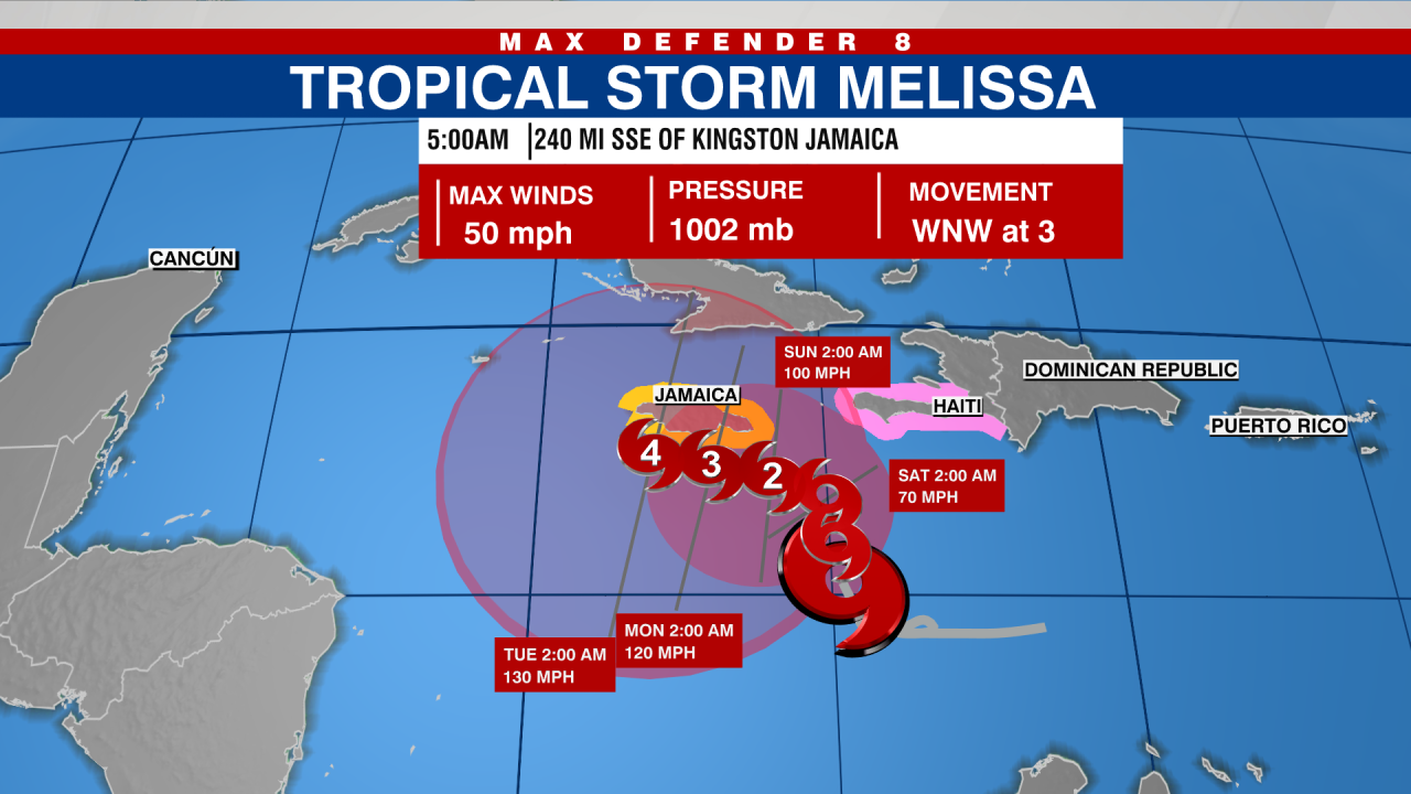 TAMPA, Fla. (WFLA) — The National Hurricane Center has warned that Tropical Storm Melissa is on course to escalate into a hurricane within the next few days.