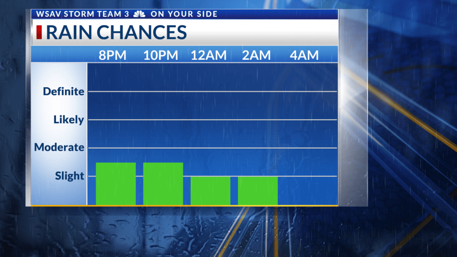 In the Tropical Atlantic, there’s an area of interest located west-southwest of the Cabo Verde Islands. There’s a 50% chance it could become a tropical depression or named storm in the coming days, before being hindered by wind shear and dry air in the Central Atlantic. Currently, there are no tropical threats to the Coastal Empire and Lowcountry.