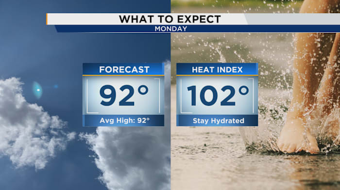 ORLANDO, Fla. – Prepare for a warm and muggy beginning to the week in Central Florida. The temperatures on Monday and Tuesday are expected to reach into the low 90s, and with the added humidity, the afternoons could feel like it’s between 100 to 105 degrees. If you’re planning to be outdoors, remember to drink plenty of water and take breaks in cooler or shaded areas.