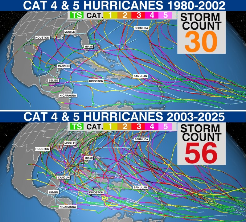 TAMPA, Fla. (WFLA) — With its formidable strength, Hurricane Melissa ranks among the most powerful hurricanes ever recorded in the Atlantic. But does this mean climate change is making hurricanes more intense?