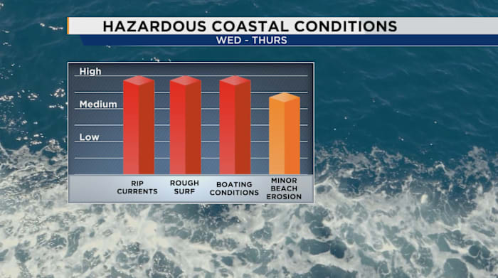 Our east coast will see some rough coastal conditions starting to worsen by Tuesday, with the worst of it hitting Wednesday and Thursday.