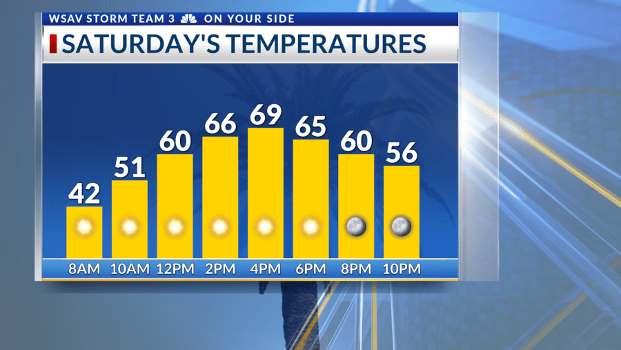 SAVANNAH, Ga. () — Get ready for a brisk weekend in Savannah, with Sunday bringing a fresh chance for some rain.