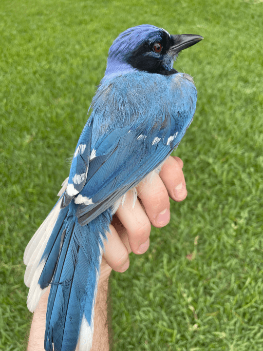 Blue Jays, found across Central Texas, and Green Jays are both social birds within their species. “It’s not unusual to have hybrids in birds, but these are intelligent, social animals that live in family groups,” Keitt said.