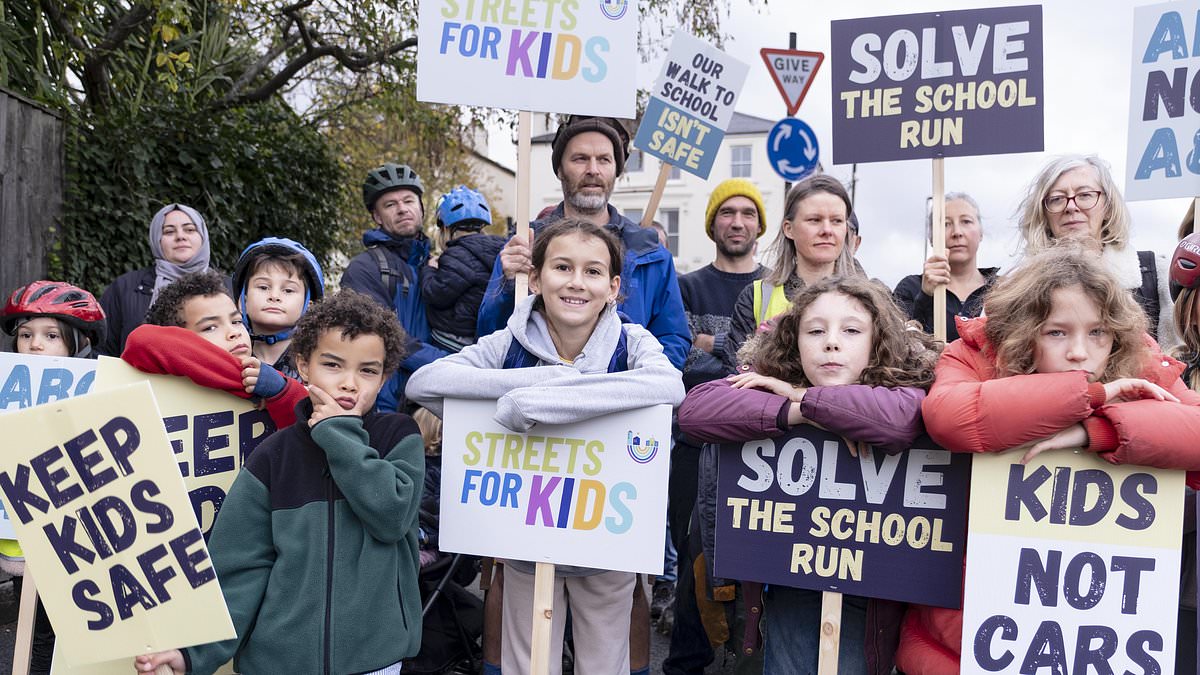 Protesters in Lewisham back campaigning by Save the School Run for more safety measures including the introduction of school streets outside every school in the capital