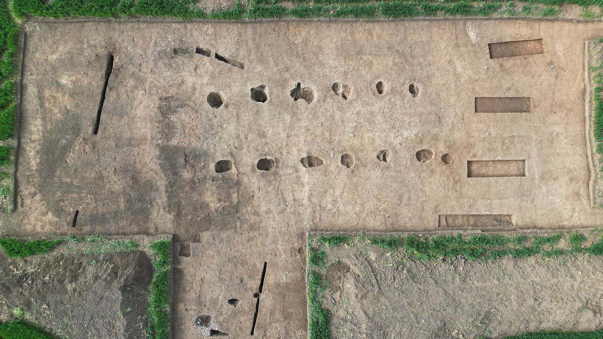 Excavators made their first discovery when they found a tandoori-style oven inside a long building, with red colouring in the earth surrounding it due to the heat.