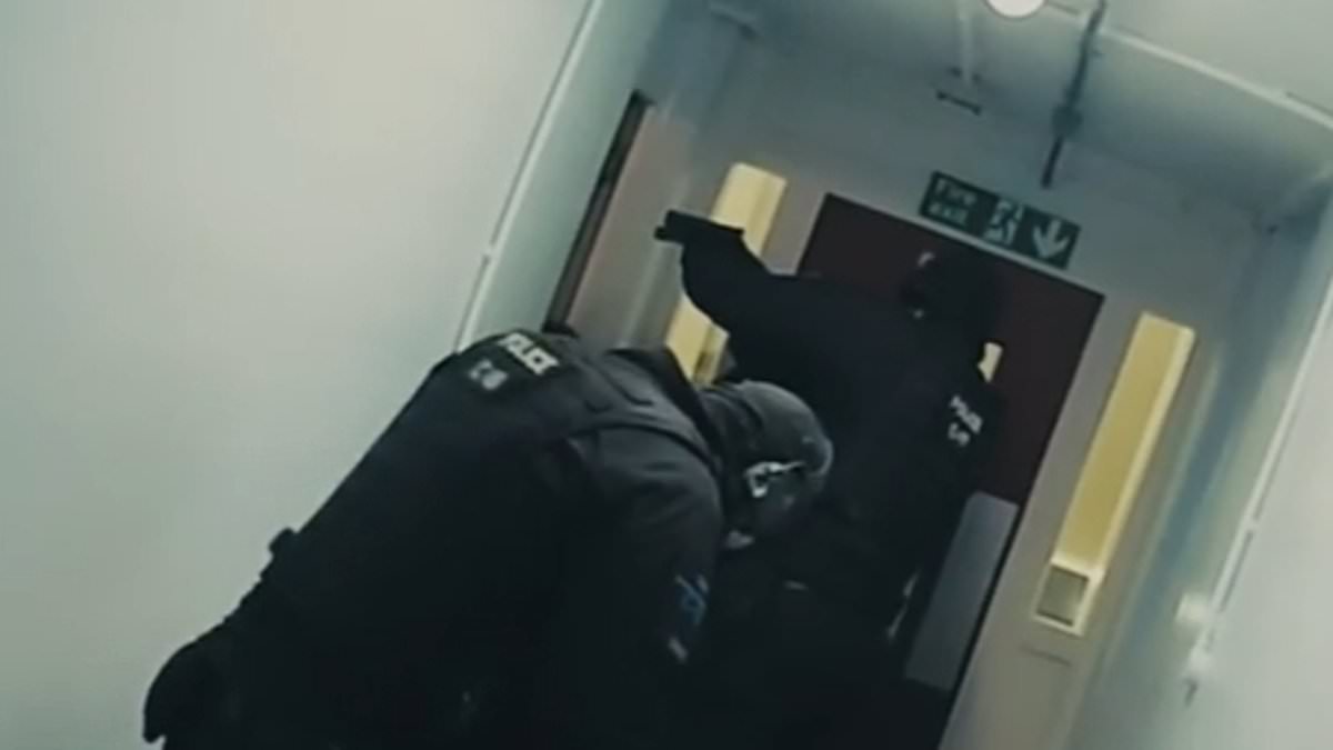 Officers are seen firing smoke grenades into the flat in case the shooter was still inside