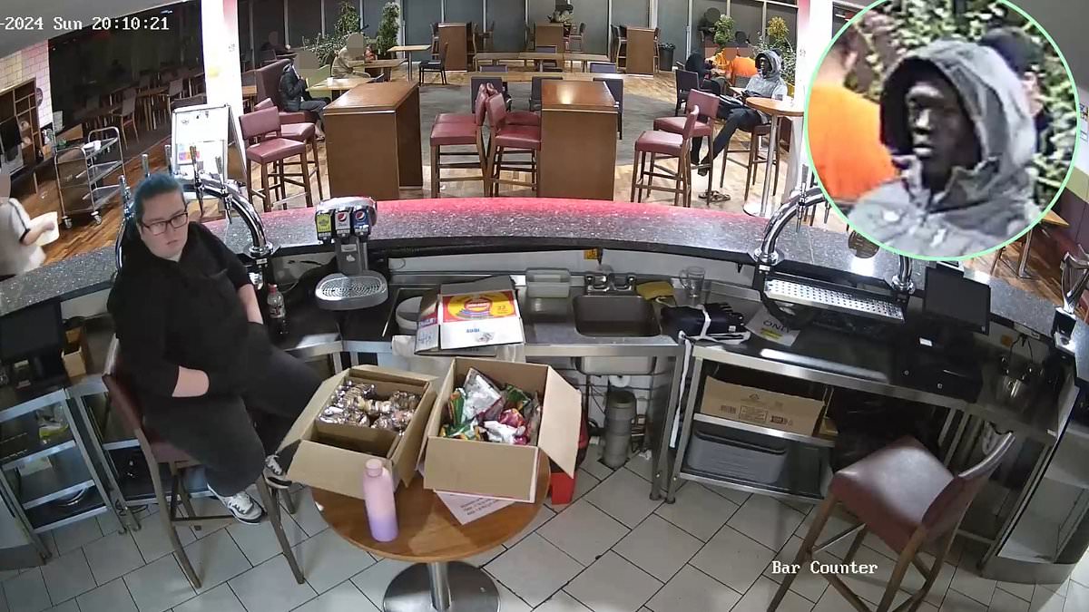 Rhiannon Whyte can be seen sitting behind the bar in the hotel while Deng Chol Majek allegedly fixes his gaze on her from a few metres away