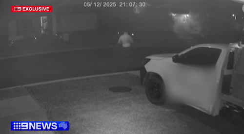 Security footage shows the injured man stumbling along the street. (Nine)