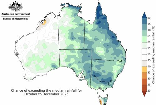 They forecast above average over large areas of Australia’s north and east during the last three months of this year.
