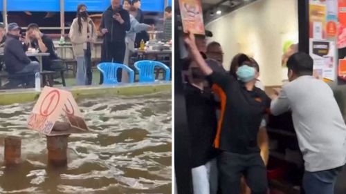 Local news footage captured scenes of hanging TVs swaying in an office and supermarket aisles littered with spilled cleaning products and broken bottles.