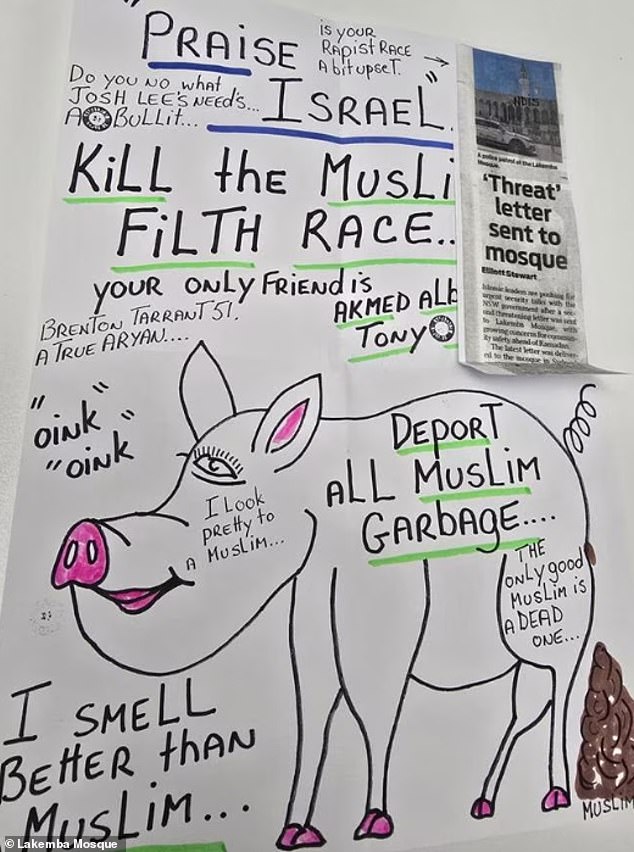 The letter also targeted Josh Lees, an organizer of pro-Palestine protests, and made reference to Brenton Tarrant, the Australian man responsible for the tragic mass shooting at a Christchurch mosque in New Zealand in March 2019, which claimed 51 lives.
