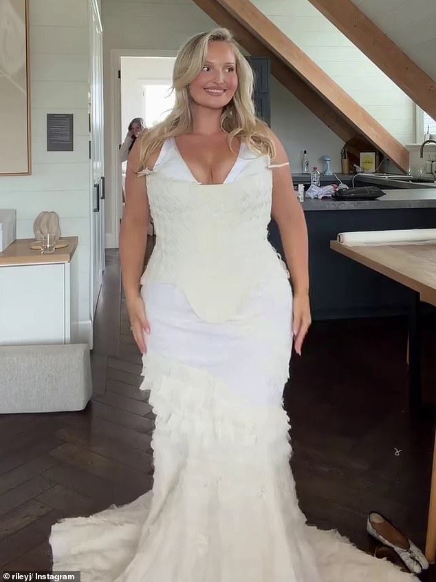 ‘YES YES YES YES!!!!!!’ someone else exclaimed, while many others said Riley was ‘gorgeous’ and looked like the ‘prettiest wife’.