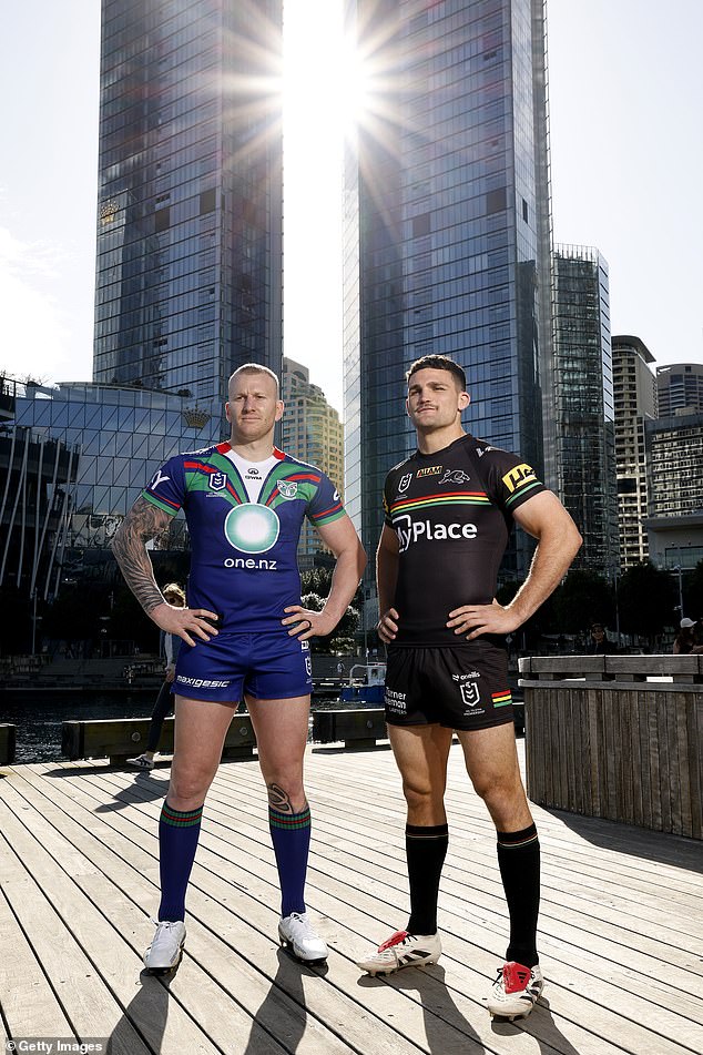 The Warriors are preparing to host the Panthers for this high-profile matchup, as showcased in a picture featuring New Zealand star Mitch Barnett alongside Penrith’s Nathan Cleary.