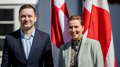 Denmark’s Prime Minister Mette Frederiksen, right, and Greenland’s Prime Minister Jens-Frederik Nielsen. (AP)