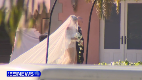 Kristie Mewis walked down the aisle dressed in white, with a long-flowing veil (Nine)