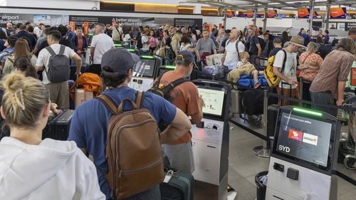The scenes like this at Sydney Airport yesterday were seen in other parts of the world as airlines race to fix the problem before more disruption occurs. (Sitthixay Ditthavong)