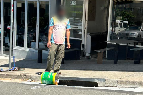 A video circulating on social media captured a man handling a sizable container near the Grumpy Baker in Coogee, reportedly on Sunday.