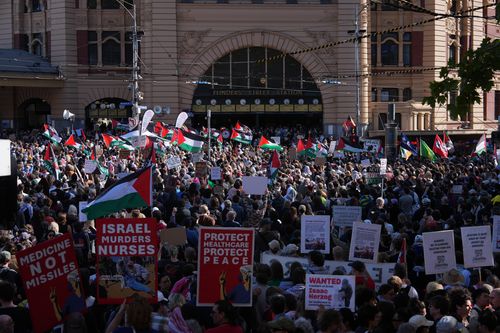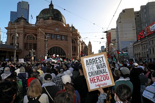 In a powerful demonstration, Flinders Street was closed off to both trams and traffic as a large crowd of protestors made their way down Swanston Street towards Parliament. The demonstrators gathered to voice their condemnation of Herzog, whom they accused of war crimes. While Victoria Police estimated the crowd at approximately 10,000 people outside Flinders Street Station, the organizers claimed the turnout was around 30,000.