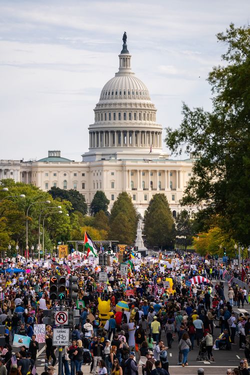Protesting the direction of the country under President Donald Trump, people gathered this weekend in the nation’s capital and communities across the US for “ No Kings ” demonstrations – what the president’s Republican Party is calling “Hate America” rallies.
