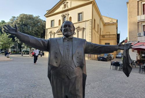 The Pavarotti statue was inaugurated in April 2024 to honour the late singer and his wife who had a holiday home on the Adriatic Coast nearby.