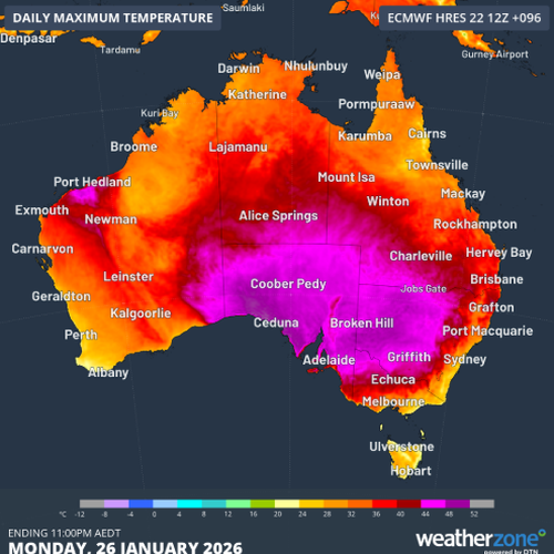 In Brisbane, temperatures will peak at 35 degrees today, with a further rise to 37 degrees anticipated for Australia Day.