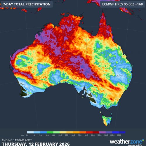 Regions in northern and central Australia could see cumulative weekly rainfall exceeding 100mm, with some locales expected to receive several hundred millimetres.