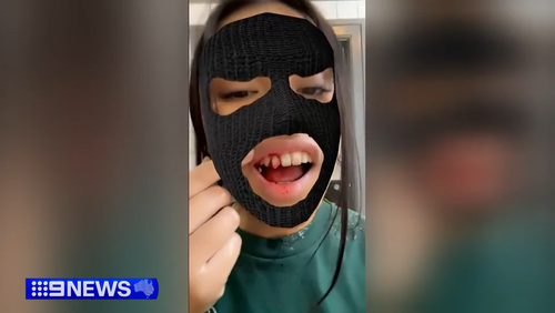 Poupon recorded a video of her injured tooth soon after the incident. (Nine)