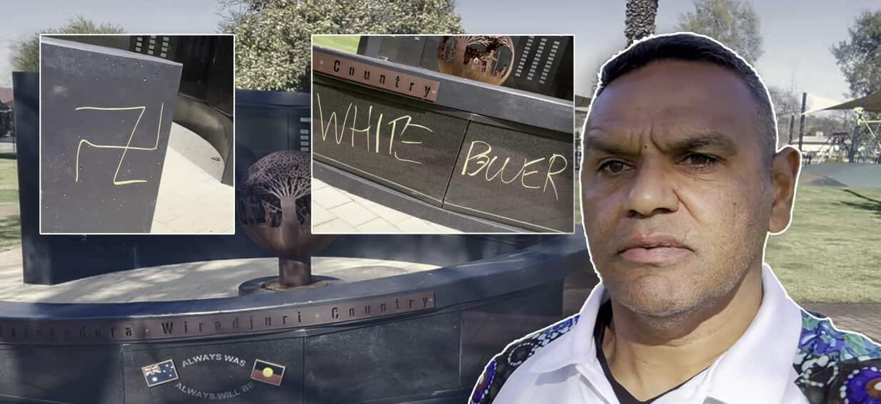 A memorial dedicated to the Wiradjuri people in Narrandera was vandalized with offensive racist graffiti and Nazi symbols.